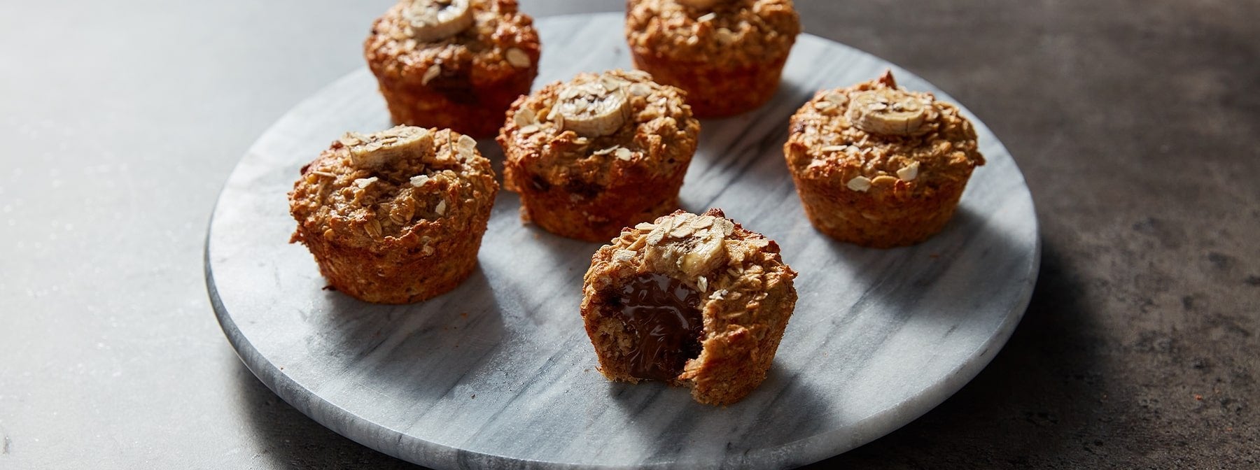 5) Добавете по едно парче банан на върху всеки мъфин и поръсете с малко овесени ядки. Изпечете за 20 минути, след това извадете от фурната и оставете настрани да се охлади за поне 5 минути преди да сервирате. Внимавайте да не се опарите.