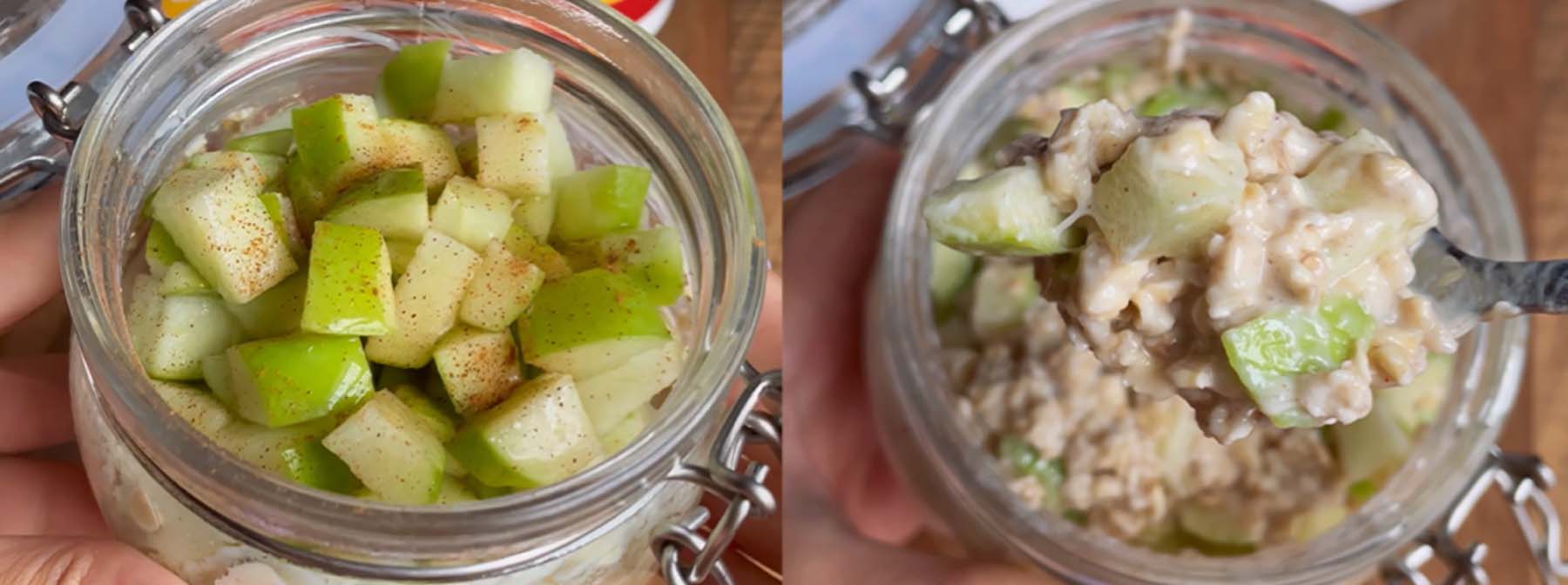 Тази рецепта е изготвена от @kirstyfletcher_ , което означава, че ще можете да се насладите на наустоимия вкус на тофи и ябълки в една хранителна зкуска, без излишна захар. Започването на деня, с една чудесна доза от 30 грама протеин, е възможно най-добрият начин да захраните тялото си и да му дадете енергия за предстоящия ден. Просто пригответе всичко от предишната вечет и го вземете сутрин, ако бързате за работа или му се насладете вкъщи. Това е чудесна рецепта за хора с натоварено ежедневие. Препоръчваме ви да направите повече и да разпределите количеството в кутии за храна, които да съхранявате в хладилника през седмицата.