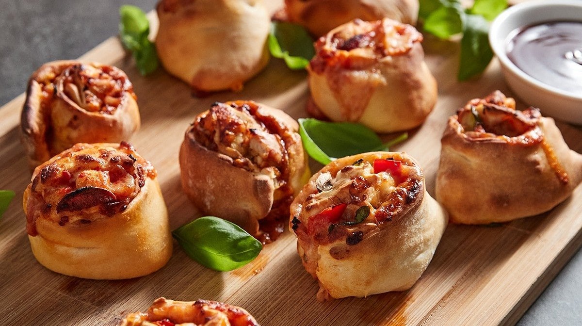 Увийте любимите си съставки за пица в нашите вкусни, меки и тестени рулца. Те са идеални за обяд или бърза закуска по всяко време на деня и са перфектния размер мини пици за потапяне в любимия ви дип или сос. Всичко, от което се нуждаете, е малко готово тесто за пица, настърган кашкавал и каквито екстри ви харесат! Направихме три лесни рецепти за вас, а те са - класически пеперони, вегетариански или барбекю с пиле. Въпреки това тази рецепта ще сработи с всяка от любимите ви съставки. Въпреки че ние сме абсолютно против ананасът.