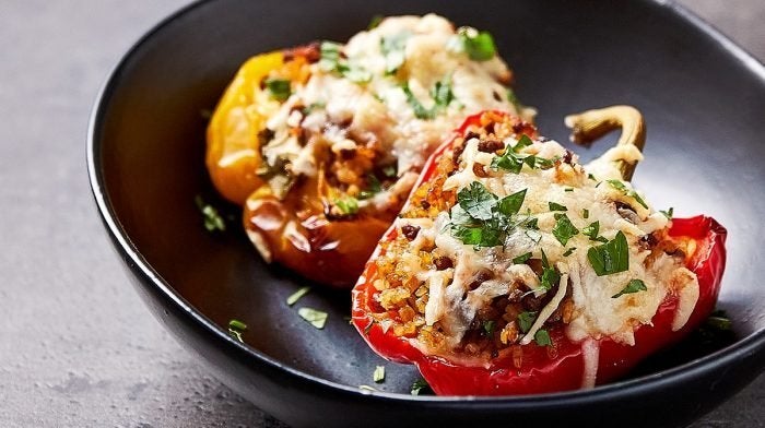 Тази бърза и лесна рецепта за пълнени чушки е идеалният начин да получите здравословна порция въглехидрати с нисък ГИ, тъй като те са пълни с булгур, който е пълнозърнест, съдържащ големи количества витамини, минерали и фибри. Те също така имат страхотно съдържание на протеини благодарение на вкусния пълнеж от телешка кайма - идеален за да ви помогне да постигнете вашите ежедневни цели.