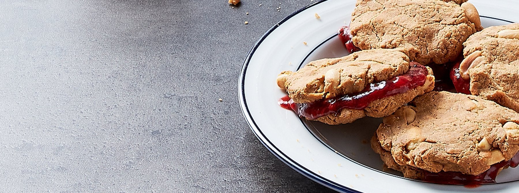 Знаехме, че би било разумно да направим протеинов шейк с вкус на фъстъци, но след това решихме да направим и нещо по-добро от просто класически Американски десерт с тази невероятна рецепта. Протеиновите бисквити с фъстъчено масло могат да се приготвят за по-малко от 15 минути и какъв по-вкусен пълнеж може да добавим освен домашен конфитюр?