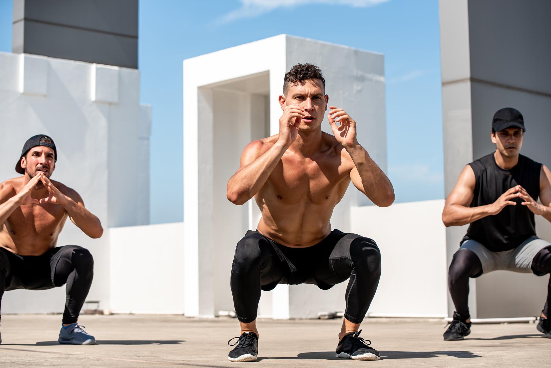 Клек с пулсации (Jump squat with pulse walk) Започнете като стоите прави с крака отворени на ширината на раменете. Скочете нагоре и се приземете в позиция за клек. Задръжте клека и се върнете в начална позиция, като приклекнете надолу пружинирайки и се изправете. От позиция на клек скочете отново нагоре и повторете същото движение.