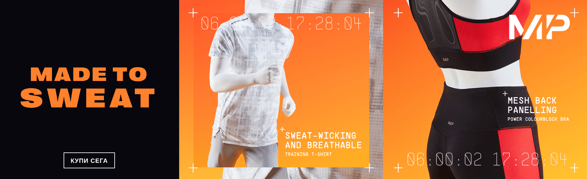 Тренировките в залата в онези летни дни могат да бъдат трудно предизвикателство, но благодарение на най-новите колекции на MP ще бъде по-лесно да поддържате целите си . Благодарение на подобрената технология за облекло, тъканите влагоабсорбиращи потта, допълнителен комфорт и дишащата мрежа за подобряване на въздушния поток, нашето облекло е проектирано да издържа дори на най-тежките и изтощителни тренировки.